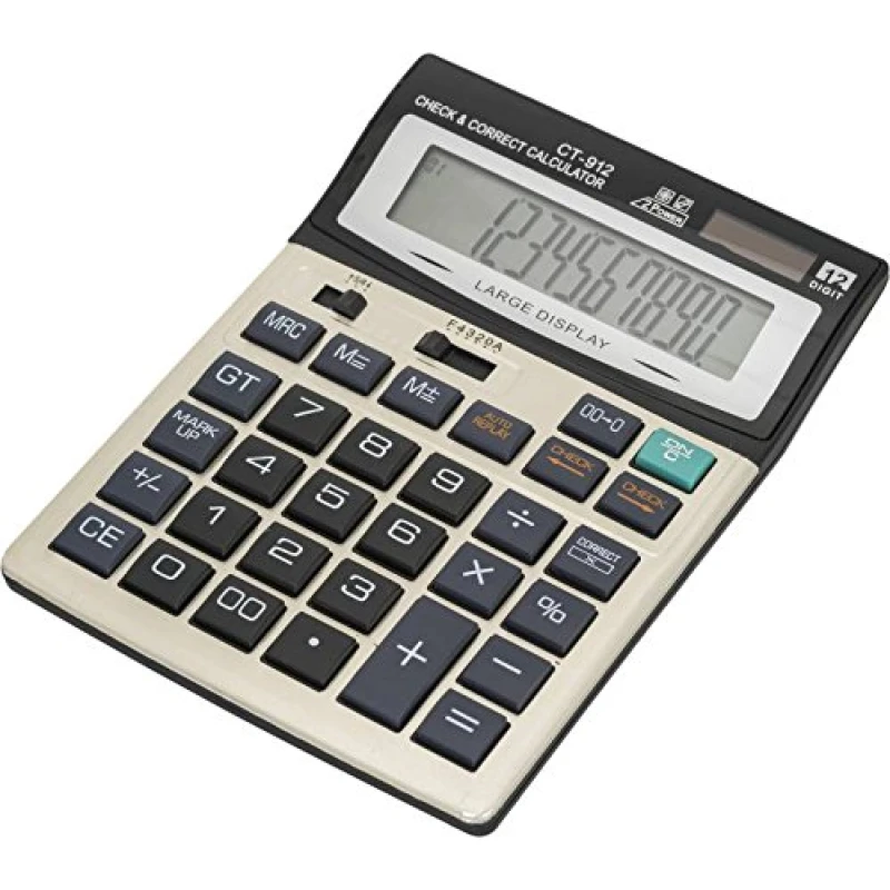 Calculator de Birou cu 12 Cifre, 15.4 x 21 x 3.5 cm, Încărcare Solară, Funcții Matematice, Gri