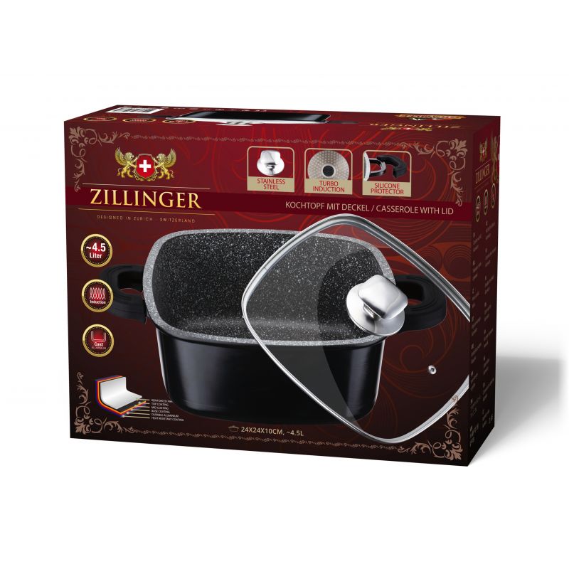 Cratita din aluminiu cu interior de granit si cu capac din sticla termorezistenta, cu o capacitate de aprox. 4.5 litri, este ideala datorita stratului non-aderent de granit ce nu permite lipirea preparatelor. Alimentele se pot gati mai usor si mai rapid cu aceasta cratita de calitate superioara de la Zillinger.