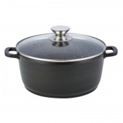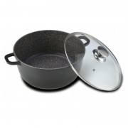 Cratita din Aluminiu de la Grunberg cu diagonala de 28 cm si o capacitate de aprox. 5.5 Litri, cu capac confectionat din sticla termorezistenta si placaj interior marmorat de inalta calitate. Cratita este disponibila pe culoarea neagra.
