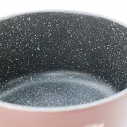 Interiorul cratitei este acoperit cu un strat marmorat ceea ce ii confera un plus de rezistenta. Aluminiul este rezistent la coroziune, este durabil, iar interiorul marmorat, pe langa cunoscuta proprietate antiaderenta, nu interactioneaza chimic cu preparatele si pastreaza gustul, culoarea si valoarea nutritionala a ingredientelor.