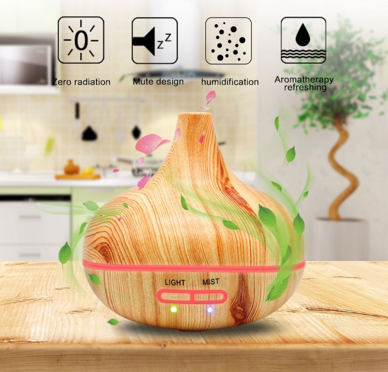 Difuzor de Aromă cu Ultrasunete Aromatherapy Bulb, 235 ml, Lumină LED 7 Culori, USB 5V, Plastic Maro/Lemn