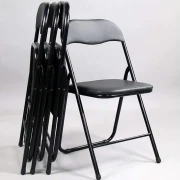 Scaun pliabil cu cadru metalic, tapițat Grunberg, 44 x 45 x 79 cm, Piele sintetică, Negru