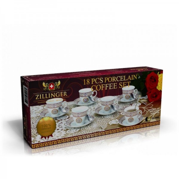 Set Cafea pentru 6 persoane Zillinger, 90 ml, 18 piese, Ceramică, Inox