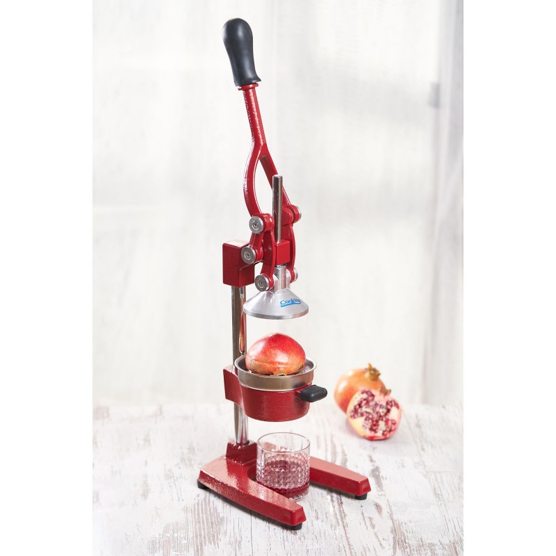Se taie fructele in jumatate si se potrivesc pe sita de stoarcere apoi se apasa de manivela care va cobori presa pe fruct.