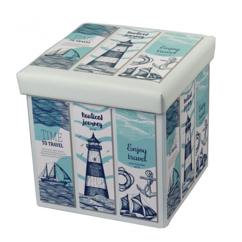 Dispune de un spatiu de depozitare in interiorul lui, taburetul avand forma unei cutii cu capac.