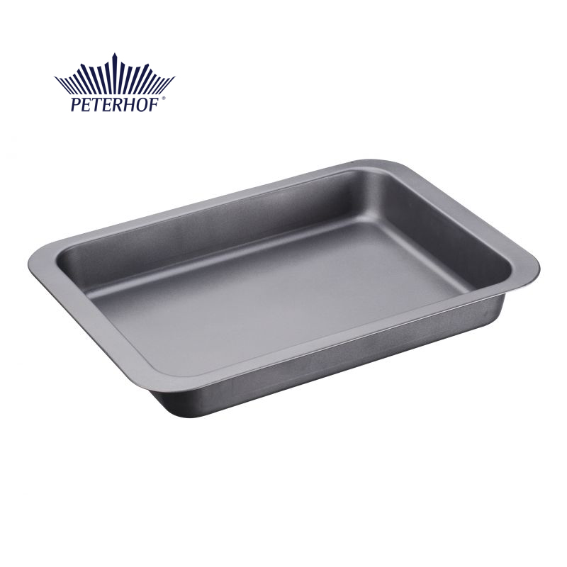 Tava pentru copt de la Peterhof, in forma dreptunghiulara, confectionata din tabla de otel de calitate, invelita in 3 straturi de teflon, ideala la crearea celor mai delicioase prajituri pentru cei dragi. Tava de copt nu trebuie sa lipseasca din bucataria ta, mai ales daca iti place sa prepari prajituri. Ideala pentru chec, cozonac sau alte preparate de patiserie.