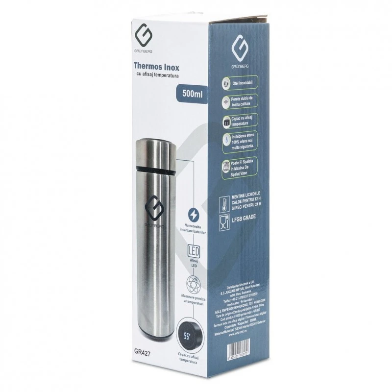 Termos din inox, capac cu afisaj LED pentru temperatura, 500 ml, Grunberg GR427