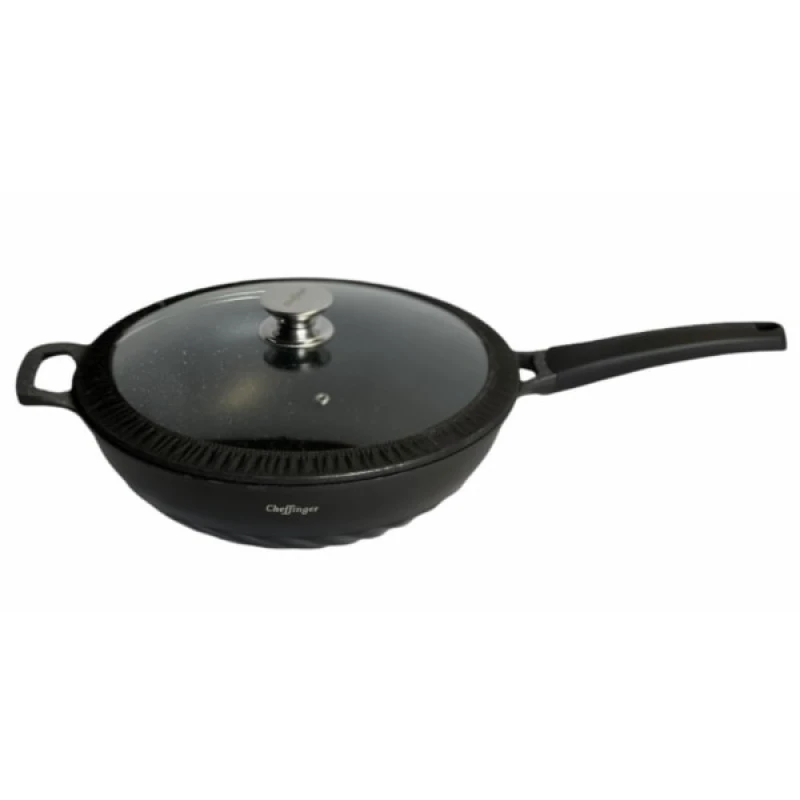Tigaie wok cu capac, interior marmorat, diametru 32 cm, CHEFFINGER.
